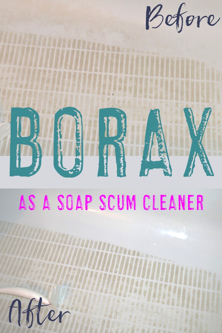 Trying to go with more natural cleaning supplies has meant I end up with lots of items that will last me a long time. Or – when you have something fail, like my laundry detergent recently did – you are left wondering how to use up all of your borax. Then a friend told me I could use it as a borax soap scum bathtub cleaner.
